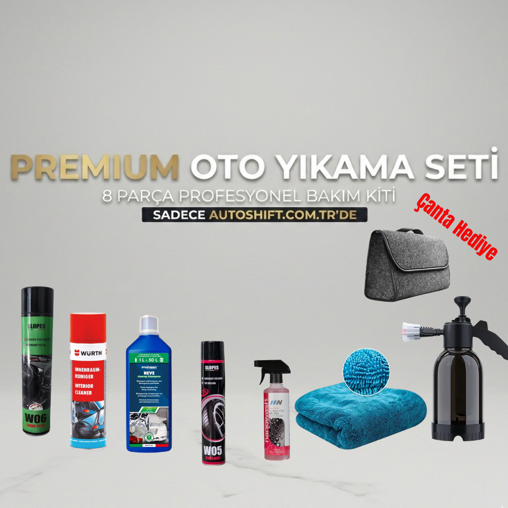 Aracınızın hem içini hem dışını ilk günkü parlaklığına kavuşturmak için ihtiyacınız olan her şey tek bir pakette! Autoshift.com.tr özel kampanyasıyla, dünyaca ünlü markaların en etkili ürünlerini, profesyonel aksesuarlarla birleştirdik. Üstelik tüm seti şık bir bagaj çantası hediyesiyle birlikte sunuyoruz.