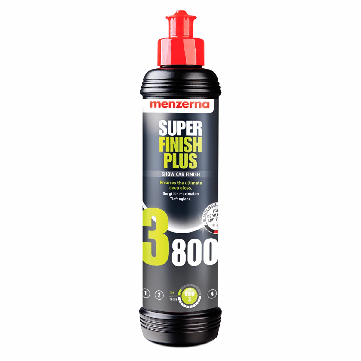 Bu hare giderici cila , çok parlak bir performans için mikro çizikleri ve hologramları giderir ve geride çok parlak bir yüzey bırakır. Siyah / koyu renkli arabalar için maksimum parlaklık elde etmek söz konusu olduğunda mükemmel bir seçimdir. Menzerna 3800 Hare Giderici , showroom cilasıdır. Gösteri arabaları dülşünülerek özel olarak tasarlanmıştır. İnce çizikleri , girdapları ve hologramları giderebilen Super Finish 3800 mümkün olan en yüksek parlaklığı ve yansıtıcı kaplamayı bırakarak arabanızı her türlü ışıkta gösterecek!